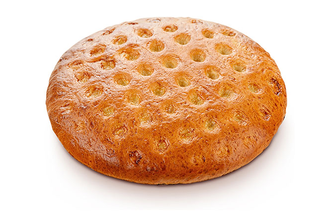 Сдобное мелкоштучное изделие округлой формы с наколами. Вырабатывается из муки пшеничной хлебопекарной высшего сорта с добавлением натуральной сметаны.