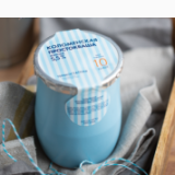 Натуральная простокваша. Изготавливается прямо в баночке, путем сквашивания цельного молока и сливок. Продается в голубой керамической крынке.